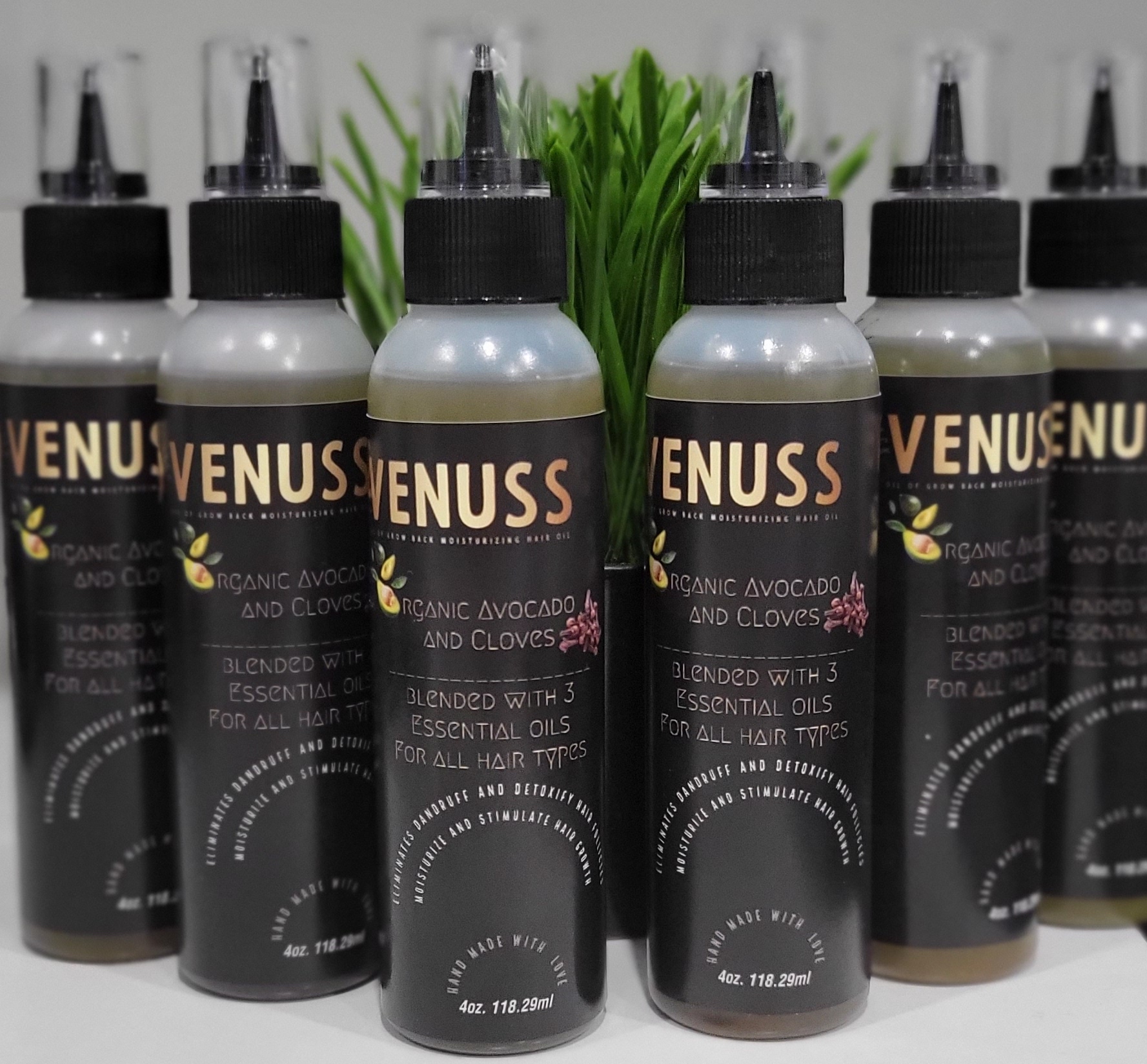 Venuss Organic Oil is a plant-based hair growth oil that is formulated with a blend of all-natural ingredients, including Cloves, Avocado, and essential oils for fast-acting ultimate nourishment and hydration.